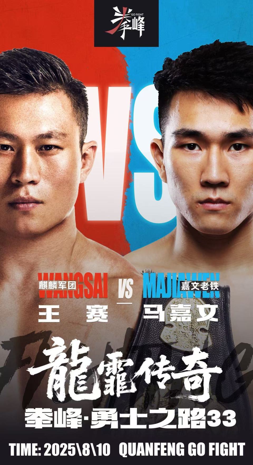 中国搏击界备受关注的焦点之战正式敲定!中国首位综合格斗世界冠军王赛将与现役国际级搏击选手马嘉文展开强强对话。本场赛事将于2025年8月10日在四川峨眉山体育馆举行,由《拳峰》赛事公司倾力承办。